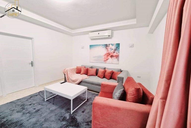 Квартира включает 2 спальни, 1 ванную комнату, современную кухню открытого плана и светлую гостиную с выходом на балкон, где можно насладиться морским бризом.